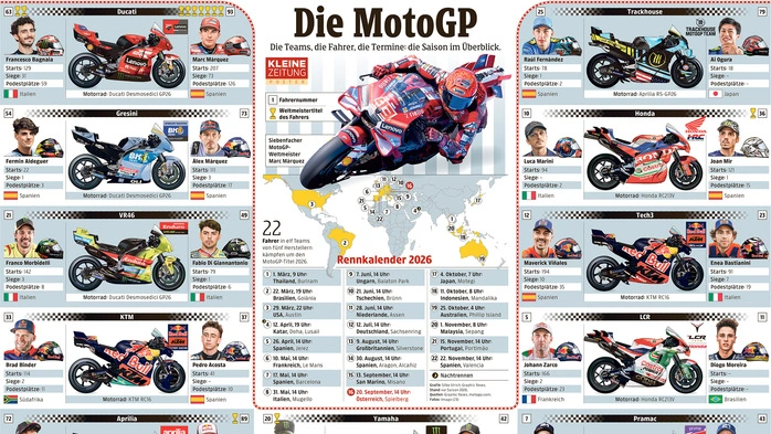 Die MotoGP startet in die neue Saison: Alle Teams, Fahrer und Termine 2026 im Überblick.