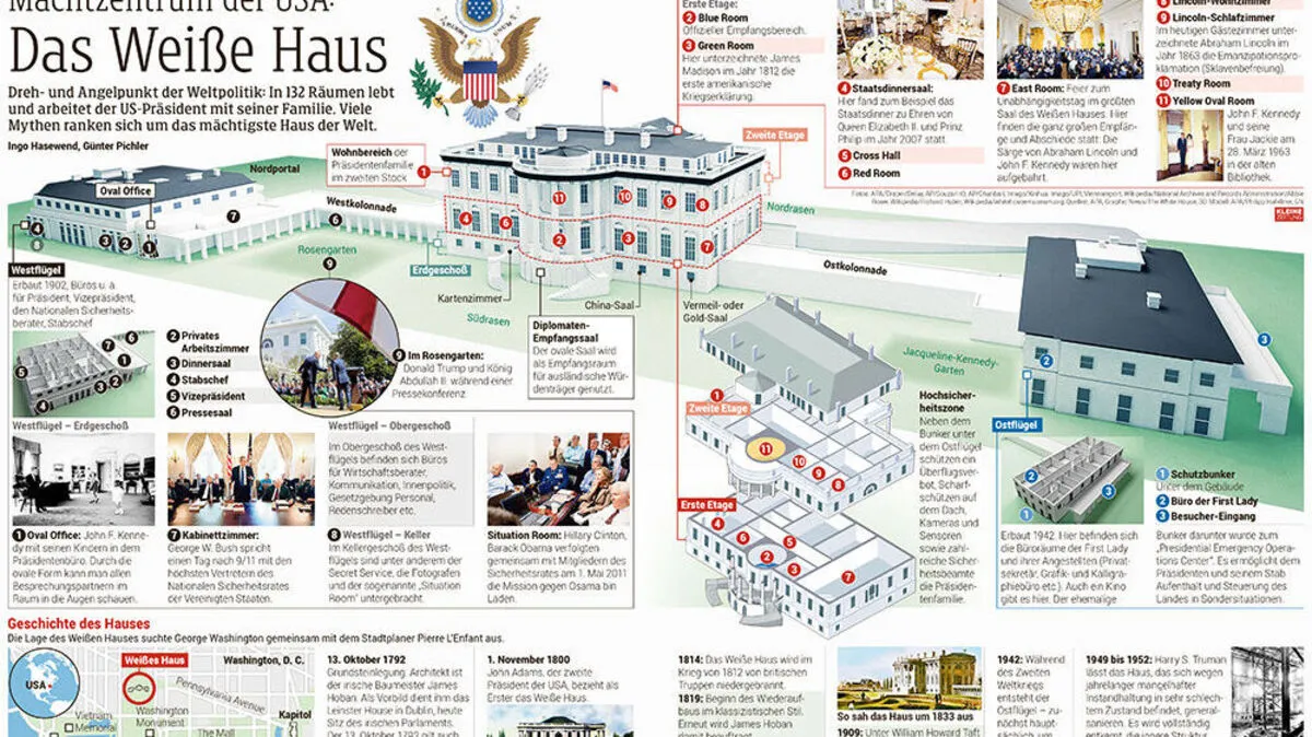 Das Weiße Haus ist Dreh- und Angelpunkt der Weltpolitik: In 132 Räumen lebt und arbeitet US-Präsident Donald Trump. Viele Mythen ranken sich um das mächtigste Haus der Welt.