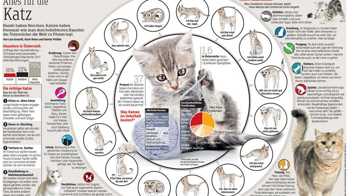 Hunde haben Herrchen, Katzen haben Personal: wie man dem beliebtesten Haustier der Österreicher – die Katze – die Welt zu Pfoten legt. Hier die Infografik als PDF zur Ansicht.