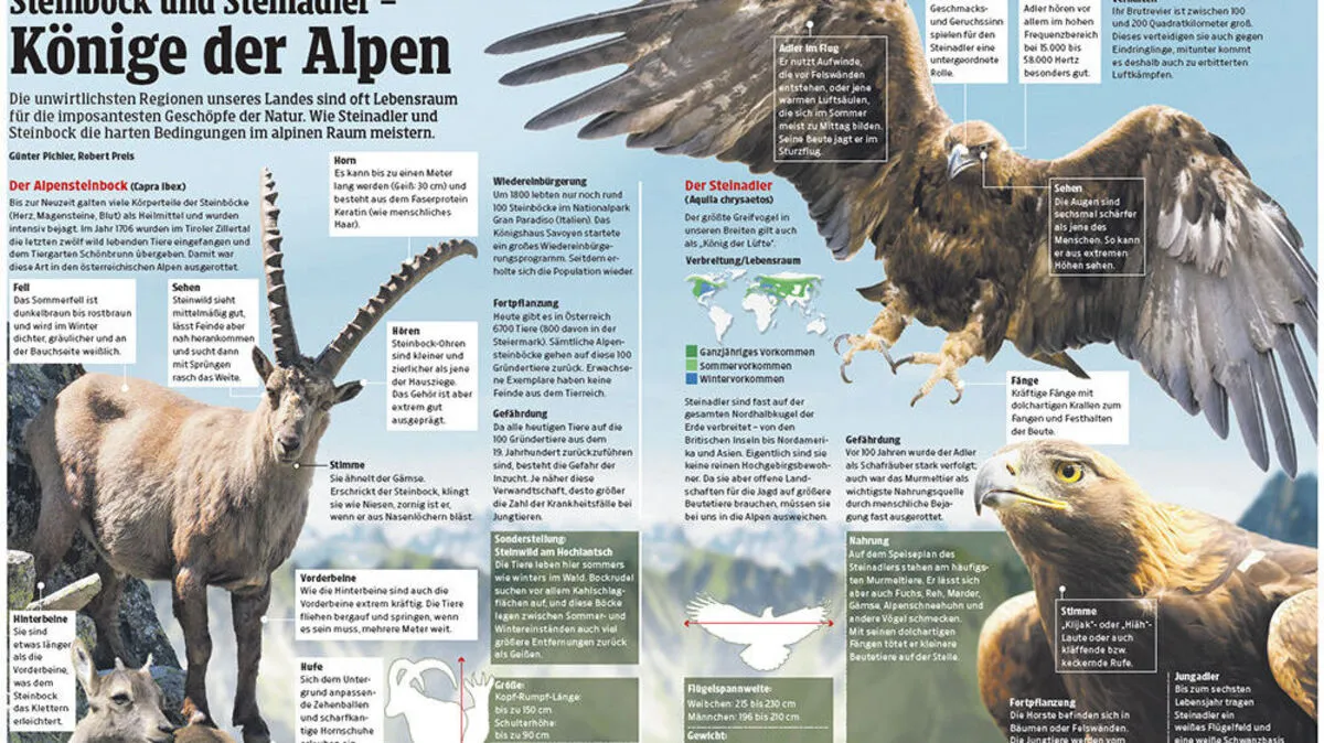 Die unwirtlichsten Regionen unseres Landes sind oft Lebensraum für die imposantesten Geschöpfe der Natur. Wie Steinadler und Steinbock die harten Bedingungen im alpinen Raum meistern.