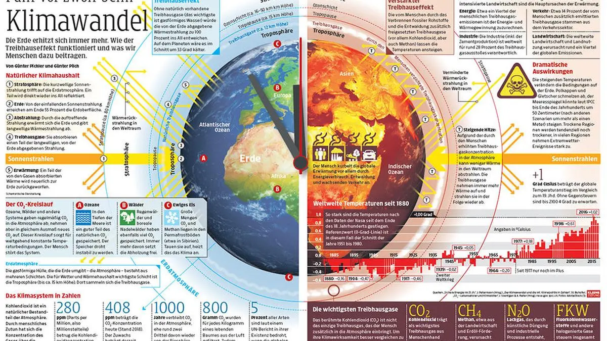 Der Mensch kurbelt die globale Erwärmung vor allem durch Energieverbrauch, Entwaldung und wachsenden Verkehr an und verstärkt damit den natürlichen Treibhauseffekt. Das Klima ändert sich. Wie der Treibhauseffekt funktioniert, erklären wir in dieser Infografik.