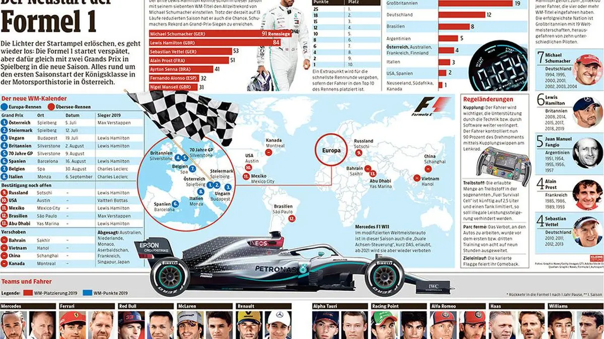 Alles rund um den ersten Saisonstart der Königsklasse in der Motorsporthistorie in Österreich. Der neue WM-Kalender, die Austragungsorte, alle Teams und Fahrer und noch vieles mehr in dieser Infografik auf einen Blick.