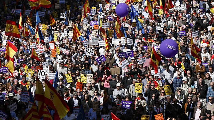 Tausende Katalanen haben am Sonntag in Barcelona gegen die Unabhängigkeitsbestrebungen ihrer Regionalregierung protestiert. Unter dem Motto "Stoppt den separatistischen Coup. Für Demokratie, Freiheit und Zusammenleben" seien mindestens 12.000 Menschen durch die Straßen des Zentrums der spanischen Metropole marschiert, teilten die Veranstalter mit.