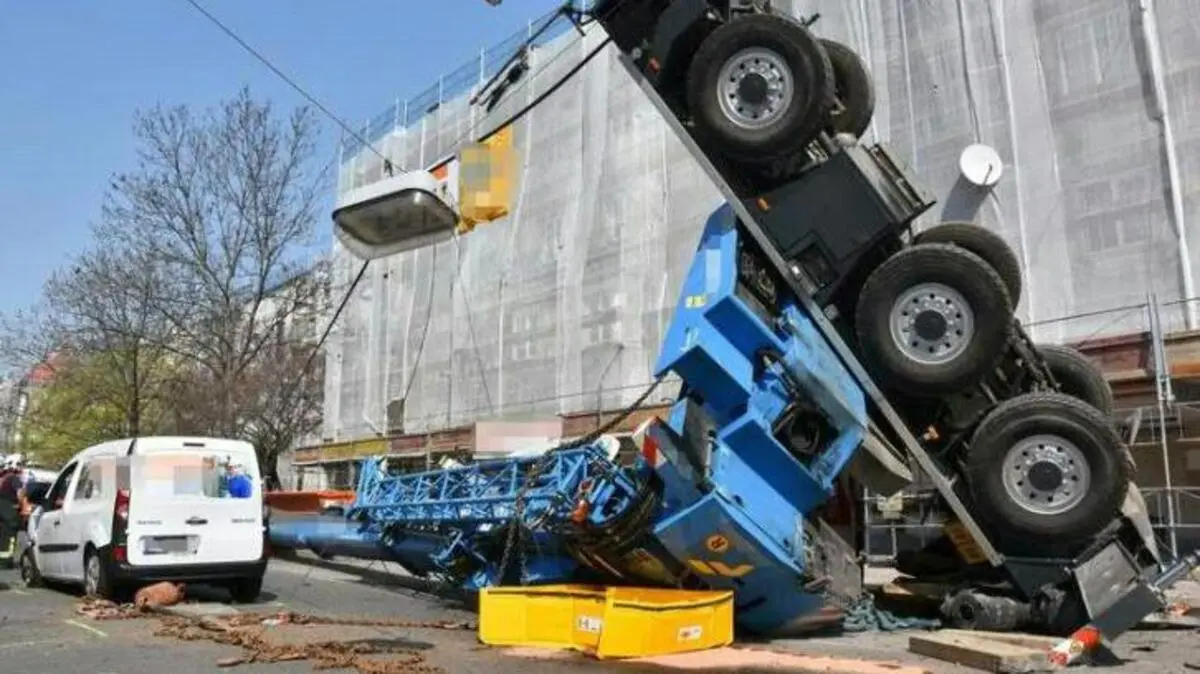 55 Tonnen schwerer Kranwagen in Wien-Donaustadt umgekippt