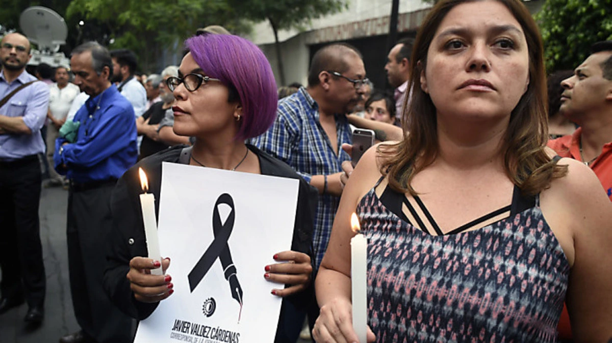 Nach dem Mord an zwei Journalisten in Mexiko haben zahlreiche Kollegen ein Ende der Gewalt gegen Medienvertreter gefordert. Am Unabhängigkeitsdenkmal schrieben sie "Sie töten uns" und "Nein zum Schweigen" auf den Asphalt. Die Journalisten zogen später weiter zum Sitz der Generalstaatsanwaltschaft.