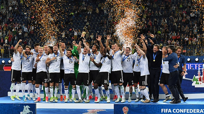 Das Experiment von Deutschlands Fußball-Teamchef Joachim Löw ist gelungen, sein Perspektivteam sicherte sich den Titel beim Confederations Cup. Der mit einer stark verjüngten Elf angetretene Weltmeister behielt am Sonntag in St. Petersburg im Finale gegen Südamerika-Meister Chile mit 1:0 die Oberhand und triumphierte damit zum ersten Mal überhaupt bei dem als WM-Generalprobe fungierenden Turnier.