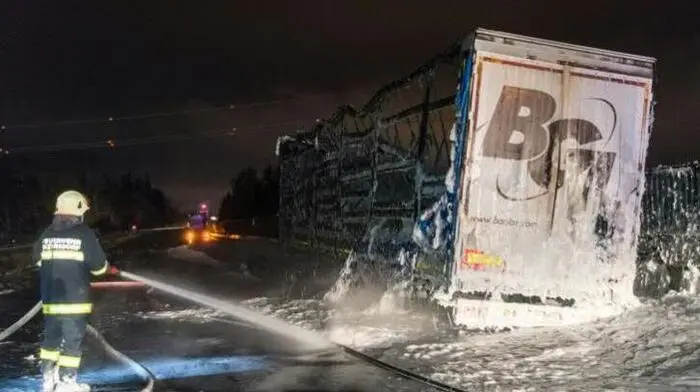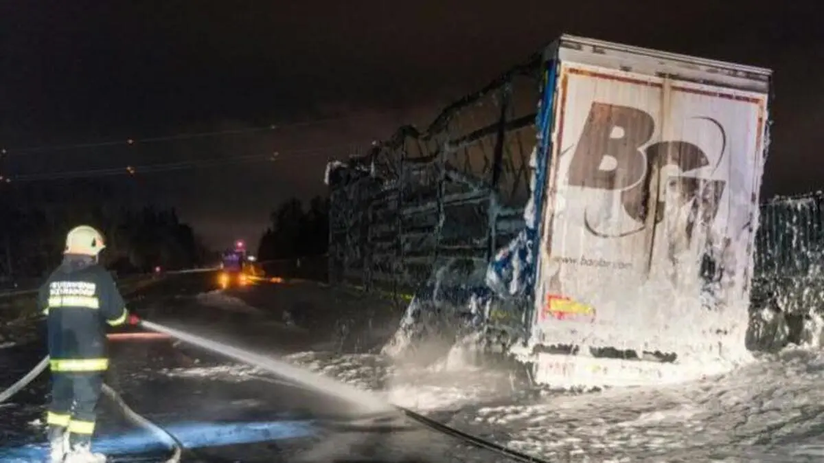 Lkw auf der A9 in Oberösterreich in Brand
