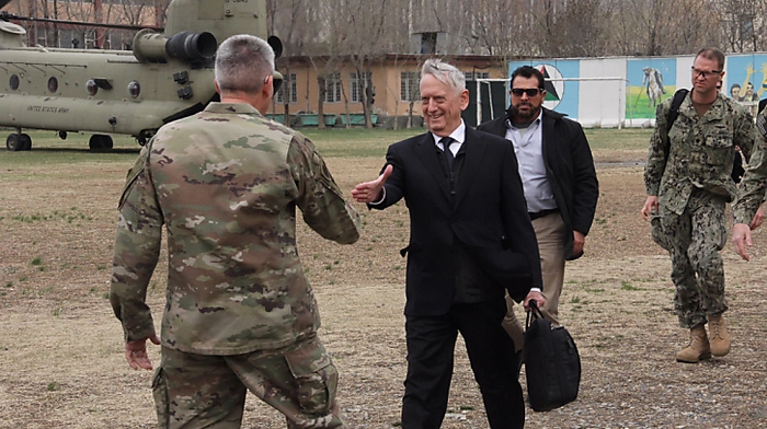 US-Verteidigungsminister James Mattis hat bei einem Überraschungsbesuch in der afghanischen Hauptstadt Kabul den Oberkommandierenden der NATO- und der US-Streitkräfte und Präsident Ashraf Ghani getroffen. Ghani twitterte am frühen Abend (Ortszeit), dass Mattis und er im Palast über Wege zum Frieden mit den radikalislamischen Taliban und weitere Themen gesprochen hätten.