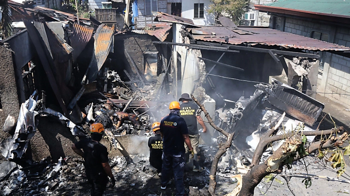 Flugzeug stürzte auf den Philippinen in ein Wohnhaus