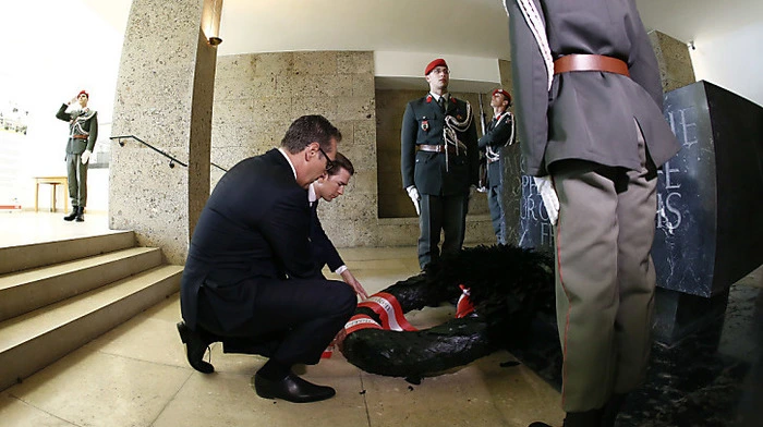 Die Bundesregierung hat am Freitag den Jahrestag der Wiedererrichtung der Republik begangen. Im Gedenken legten Bundeskanzler Sebastian Kurz (ÖVP) und Vizekanzler HC Strache (FPÖ) im Weiheraum und vor der Gedenktafel für die toten Soldaten am Äußeren Burgtor Kränze nieder. Am 27. April 1945 wurde mit der Unabhängigkeitserklärung von SPÖ, ÖVP und KPÖ die Geburt der Zweiten Republik eingeleitet.