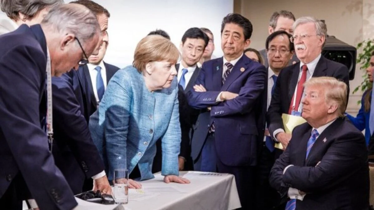 Die angespannte Stimmung auf einem Foto mit der deutschen Bundeskanzlerin Angela Merkel beim G-7-Gipfel in Kanada spiegelt nach den Worten des US-Präsidenten nicht die wirkliche Atmosphäre wider. "Ich weiß, dass es unfreundlich aussah", sagte Donald Trump am Dienstag. "Aber wir redeten gerade über etwas, das nichts mit dem Gipfel zu tun hatte."