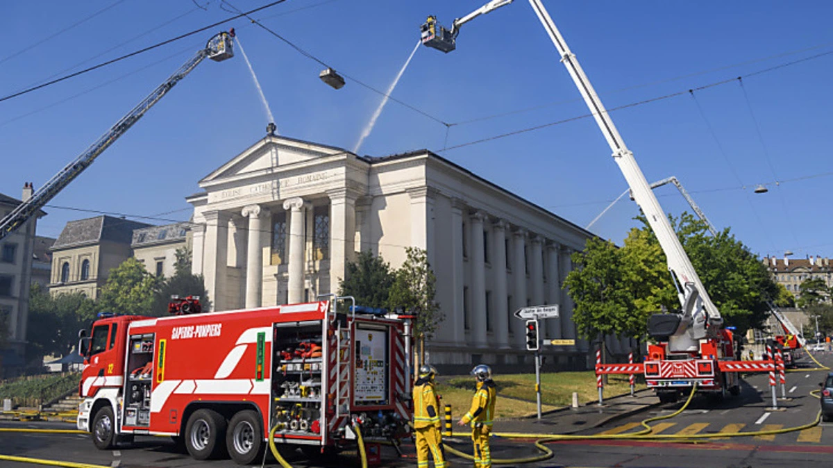In der Kirche Sacre Coeur in Genf ist am Donnerstagnachmittag ein Brand ausgebrochen: Drei Stockwerke der Kirche im Stadtteil Plainpalais sind eingestürzt. Laut Feuerwehr- und Rettungsdienst (SIS) ist der Einsturz des gesamten Gebäudeinneren "unvermeidlich".