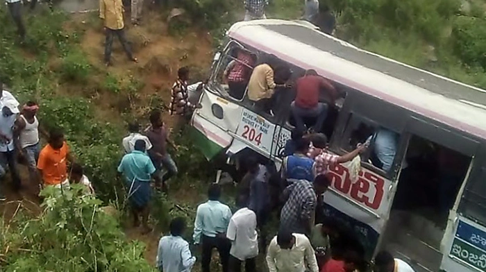 Mindestens 55 Menschen sind bei einem Busunglück im Süden Indiens gestorben. Der Bus stürzte am Dienstag in einer hügeligen Region im Bezirk Jagtial im Bundesstaat Telangana sechs Meter tief einen Abhang hinunter, wie A Sarath von der Bezirksregierung sagte. 33 Menschen wurden verletzt.