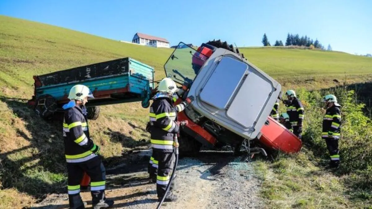 Landwirt in der Steiermark mit Traktor über Wiese abgestürzt