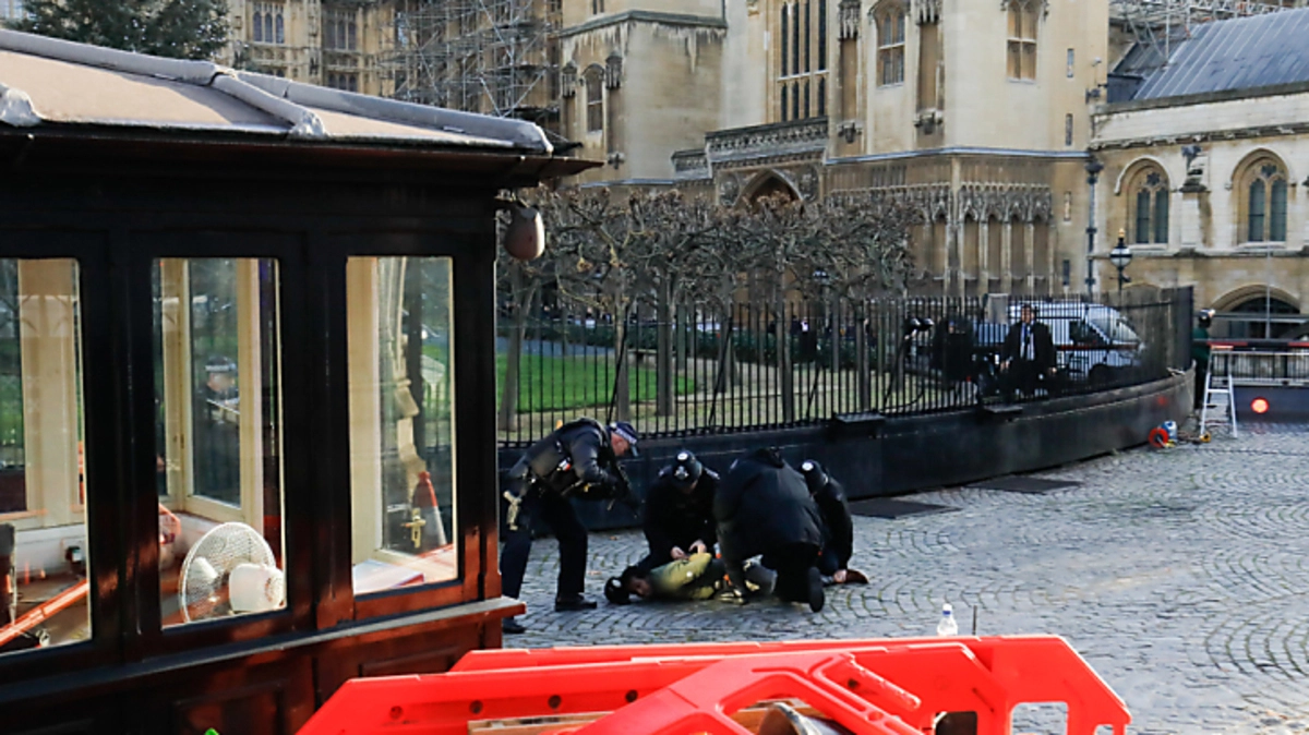 Auf dem Gelände des britischen Parlaments in London hat die Polizei Berichten zufolge am Dienstag einen Mann festgenommen. Auf Bildern in sozialen Netzwerken war zu sehen, wie Beamte den Mann festhielten. Bei dem Einsatz soll ein Elektroschocker zum Einsatz gekommen sein.