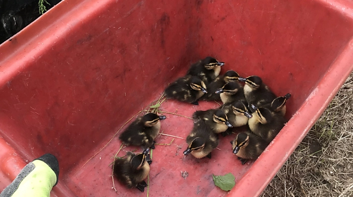 Verirrte Entenfamilie in Villach von Feuerwehr gerettet