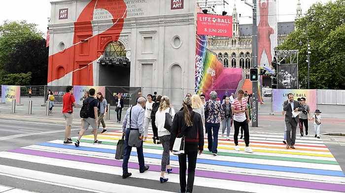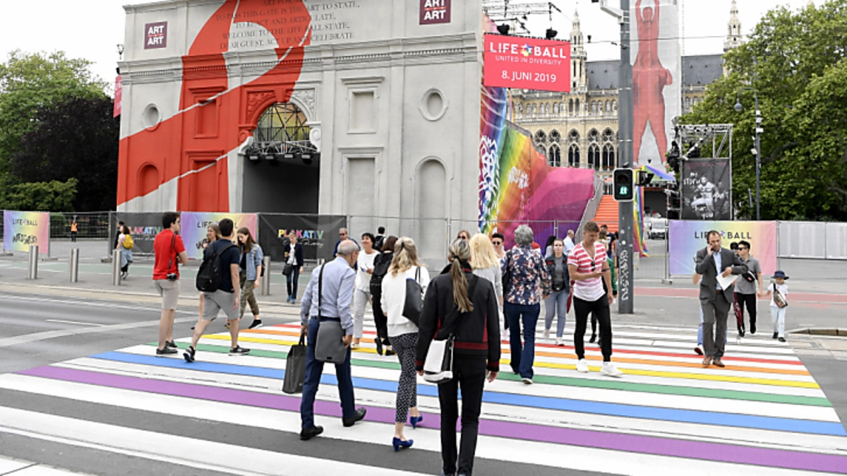 Anlässlich der EuroPride in Wien hat die Stadt ihren ersten Regenbogen-Schutzweg bekommen. Vor dem Burgtheater wurden in der Nacht auf Donnerstag die Zwischenräume des Zebrastreifens in den LGBT-Farben ausgemalt. Die Bemalung wird auch nach der EuroPride bestehen bleiben. "Als Signal der Toleranz und Weltoffenheit", hieß es aus dem Büro von Planungsstadträtin Maria Vassilakou (Grüne).