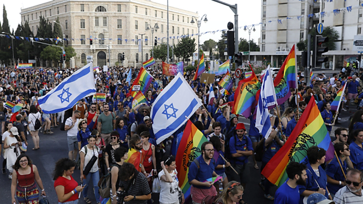 Tausende von Israelis haben am Donnerstag in Jerusalem an der Gay-Pride-Parade teilgenommen. Sie hielten Schilder in die Höhe und forderten gleiche Rechte für Schwule, Lesben, Bi- und Transsexuelle (LGBT). Nach Angaben eines Polizeisprechers waren rund 2.500 Polizisten im Einsatz.