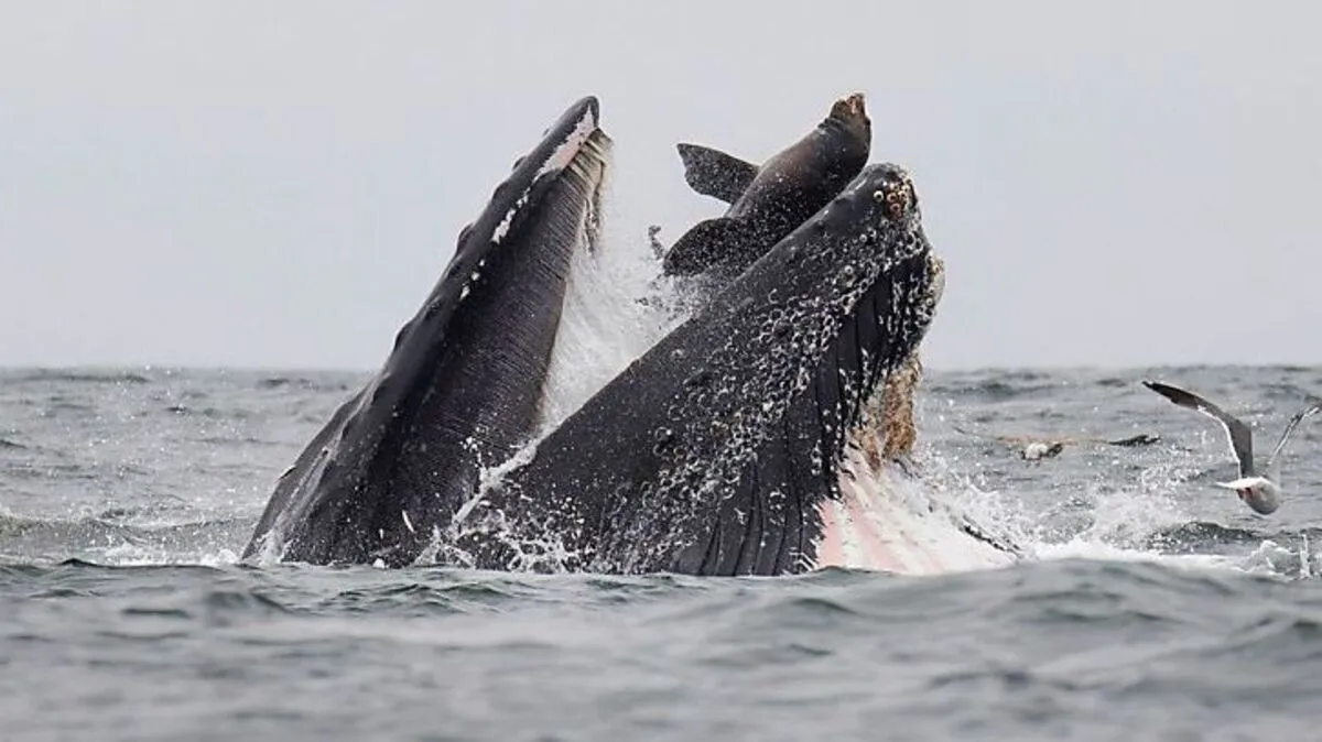Fotograf schoss spektakuläres Foto von Seelöwen in Wal-Maul