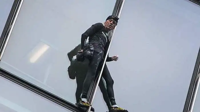 Fassadenkletterer Alain Robert erklomm Hochhaus in Frankfurt