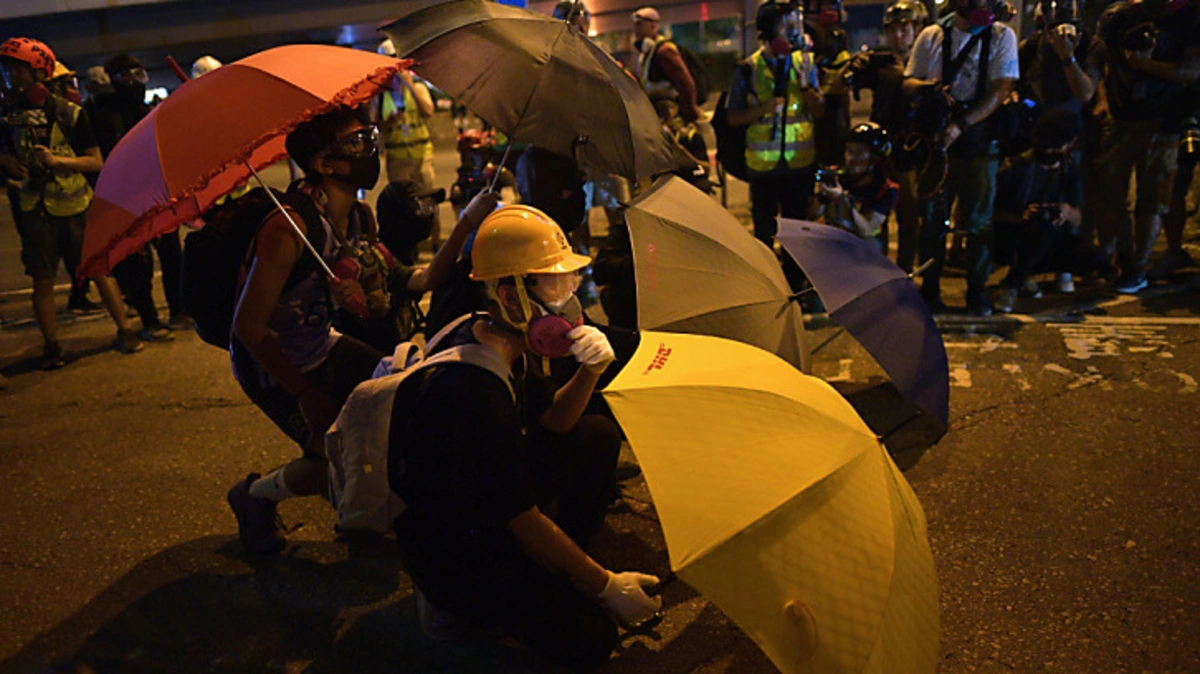 Nach einer friedlichen Kundgebung von Zehntausenden zum fünften Jahrestag der "Regenschirm-Bewegung" in Hongkong ist es am Samstag erneut zu Zwischenfällen mit radikalen Aktivisten gekommen. Die Polizei ging nahe dem Parlamentsgebäude mit Wasserwerfern und Pfefferspray gegen Demonstranten vor, die Brandsätze geworfen hatten.
