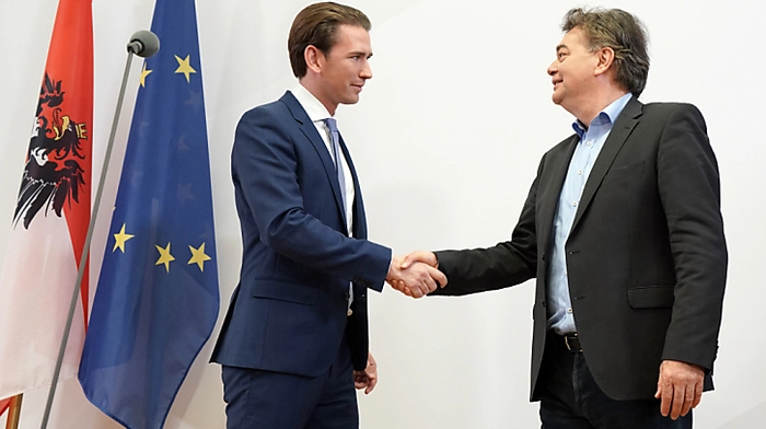 Erstmals seit der Wahl haben sich die Chefs von ÖVP und Grünen zum Auftakt der offiziellen Regierungsverhandlungen gemeinsam den Medien gestellt. Nach dem Vier-Augen-Gespräch der Vorsitzenden Sebastian Kurz (ÖVP) und Werner Kogler (Grüne) gaben sich beide verhalten optimistisch. Ins Rennen geschickt werden gleich 100 Verhandler.