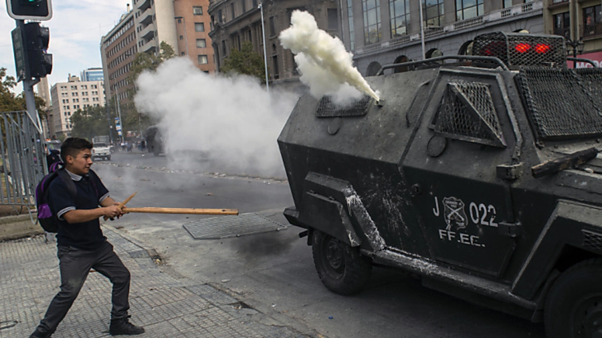 Bei Protesten von Schülern und Studenten in Chile ist es zu heftigen Zusammenstößen mit der Polizei gekommen. Vermummte schleuderten am Mittwoch in Santiago de Chile Steine und Brandsätze auf die Polizei, die ihrerseits Tränengas in die Menge feuerte.