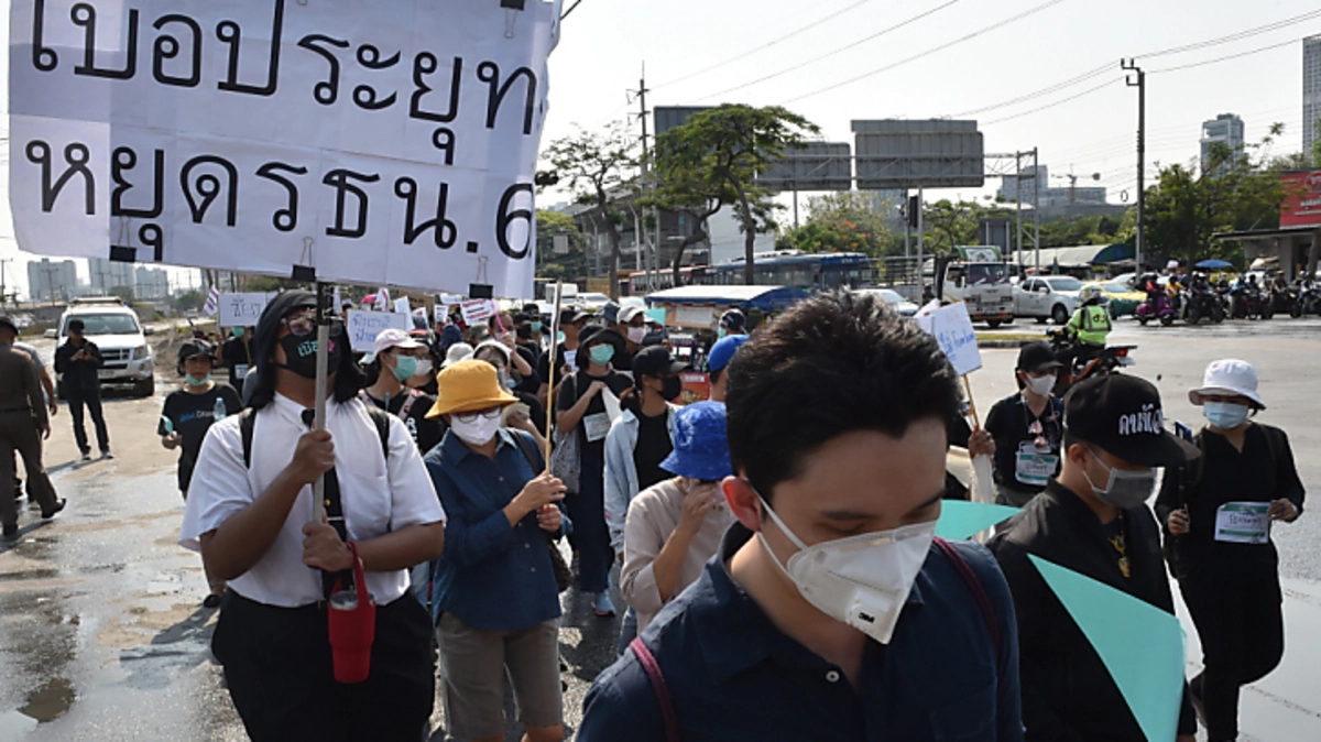Erstmals seit dem Militärputsch in Thailand vor knapp sechs Jahren sind in Bangkok am Freitag Hunderte Demokratieanhänger zu einem Protestmarsch auf die Straße gegangen. Mit schwarzen T-Shirts als Symbol der Trauer um die Demokratie marschierten die Demonstranten in Richtung des Parlamentsgebäudes und forderten den Rücktritt der militärnahen Regierung unter Ex-Armeechef Prayut Chan-O-Cha.