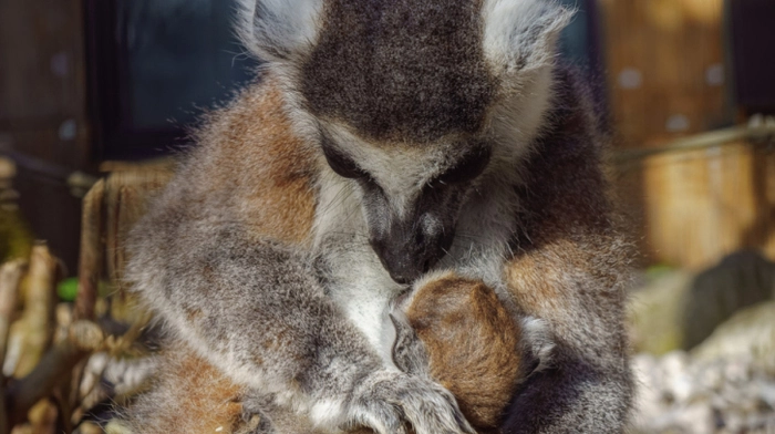 Ein Katta-Baby hat im derzeit geschlossenen Zoo Schmiding in Krenglbach bei Wels das Licht der Welt erblickt. Es verbringt die meiste Zeit fest an den Bauch seiner Mama gekuschelt und genießt mit ihr die Frühlingssonne. Aber auch die älteren Geschwister und die anderen Weibchen der Lemuren-Gruppe helfen bei der Aufzucht und umsorgen das Kleine liebevoll.