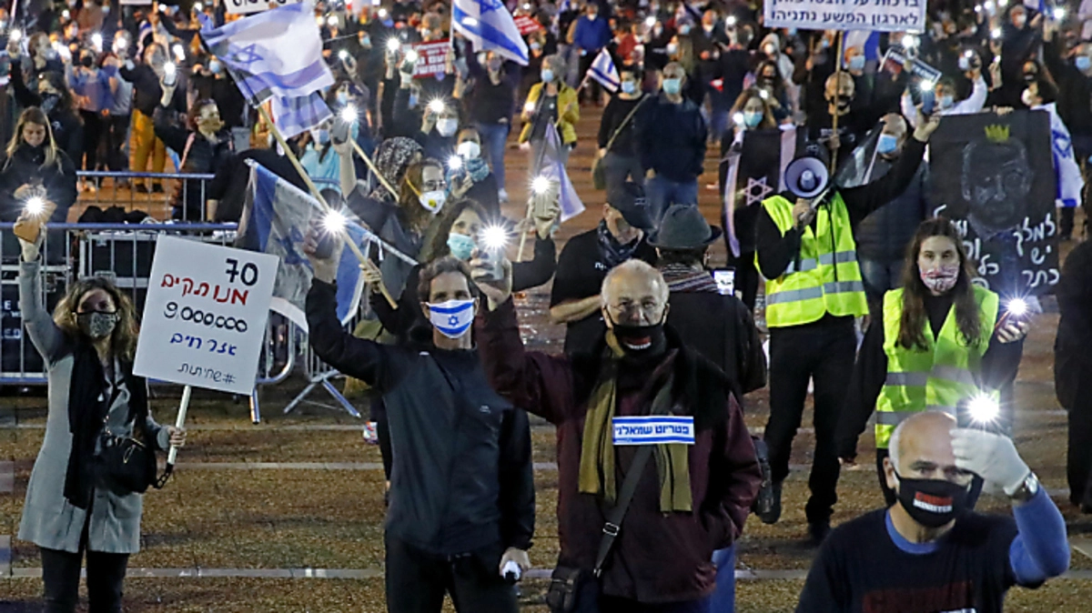 Tausende Israelis haben am Samstagabend nach Medienberichten in Tel Aviv gegen die Politik des rechtskonservativen Ministerpräsidenten Benjamin Netanyahu demonstriert. Die Menschen versammelten sich auf dem zentralen Rabin-Platz und hielten dabei wegen der Coronakrise einen Sicherheitsabstand von zwei Metern.