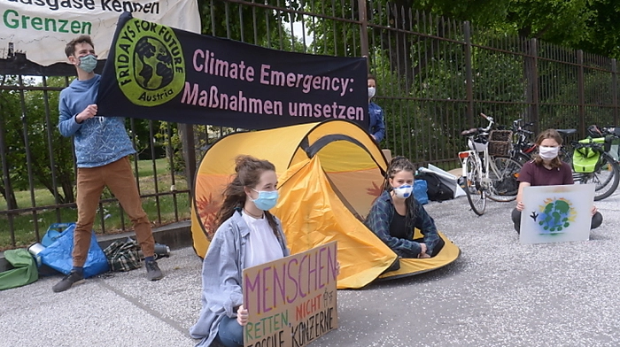 Nach 168 Stunden durchgehendem Protest für einen "Klima-Corona-Deal" vor dem Bundeskanzleramt in Wien haben die Aktivisten von Fridays For Future ihre Aktion mit einem Schildermeer auf dem Platz der Menschenrechte beendet. Gefordert wurde, dass staatliche Hilfsgelder an ökosoziale Richtlinien im Sinne der Pariser Klima-Ziele gebunden werden sowie die Einbindung der Wissenschaft die Verhandlungen.