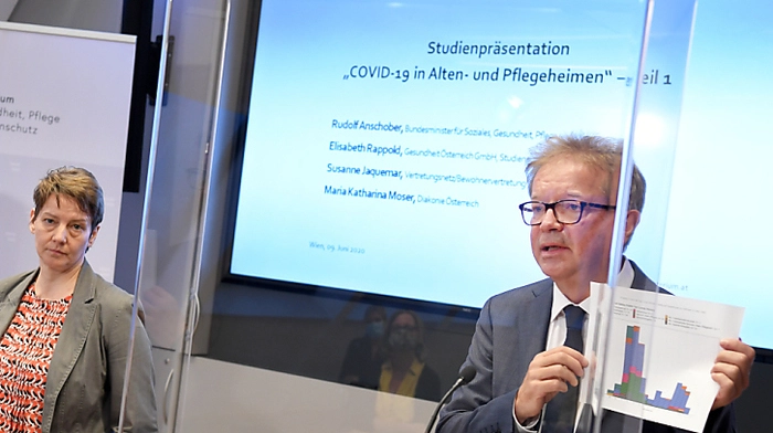 Bewohner von Alten- und Pflegeeinrichtungen machen ein Drittel der insgesamt in Österreich an Covid-19 Verstobenen aus. Unter den bisher 646 Corona-Toten waren 222 Bewohner von Betreuungseinrichtungen, wie es am Dienstag bei einer Studienpräsentation hieß. Bei aller Tragik seien diese Entwicklungen im internationalen Vergleich positiv zu bewerten, so Gesundheitsminister Rudolf Anschober (Grüne).