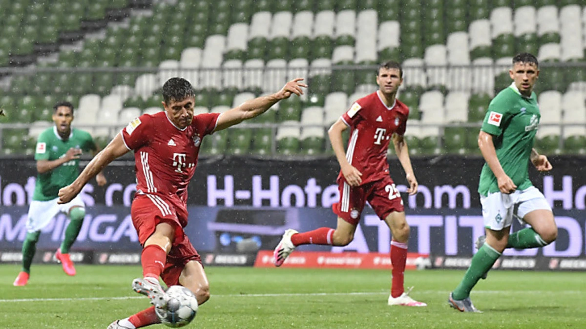 Robert Lewandowski - wer sonst! Um die letzte Hürde auf dem Weg zur achten deutschen Fußball-Meisterschaft in Serie zu nehmen, bedurfte es wieder einmal eines Geniestreichs des polnischen Topstürmers. Ein Lupfer von Jerome Boateng, Annahme mit der Brust, kleine Drehung und ab ins Tor: So machte Lewandowski Bayern München am Dienstag mit dem 1:0 bei Werder Bremen wieder zum nationalen Titelträger.
