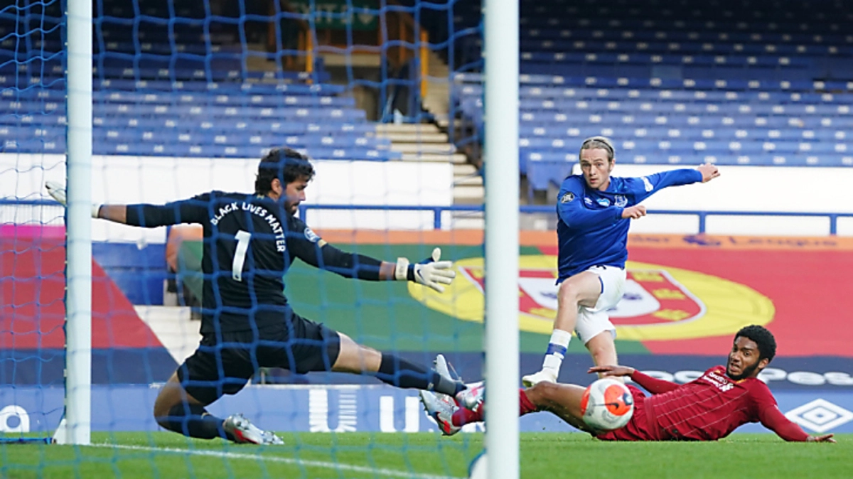 Der Re-Start in die englischen Fußball-Premier-League ist für Liverpool nicht nach Wunsch verlaufen. Der überlegene Tabellenführer musste sich am Sonntag beim Merseyside-Derby auswärts gegen Everton mit einem 0:0 zufriedengeben und hatte dabei Glück, nicht als Verlierer vom Platz zu gehen.