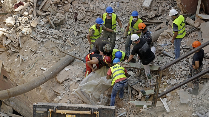 Nach drei Tagen der Suche haben die Rettungskräfte keine Hoffnung mehr, einen weiteren Überlebenden der Explosionskatastrophe in Beirut zu finden. Unter den Trümmern eines eingestürzten Hauses gebe es "aus technischer Sicht" keine Anzeichen für Leben, sagte der Leiter des chilenischen Rettungsteams "Topos" ("Maulwürfe"), Francisco Lermanda. Es könne ausgeschlossen werden, dass dort jemand sei.