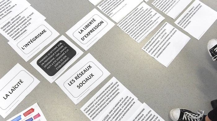 Gut zwei Wochen nach dem Mord an einem Lehrer in Frankreich wird gegen mehrere Schüler wegen des Verdachts der "Terrorverherrlichung" ermittelt. Unter anderem sollen zwei Zwölfjährige im Großraum Straßburg die Enthauptung des Pädagogen befürwortet haben, wie die Staatsanwaltschaft am Dienstag mitteilte. Auch gegen Grundschüler im Alter von acht und neun Jahren werde ermittelt, hieß es. Der Lehrer hatte vor seinem Tod Mohammed-Karikaturen im Unterricht gezeigt.