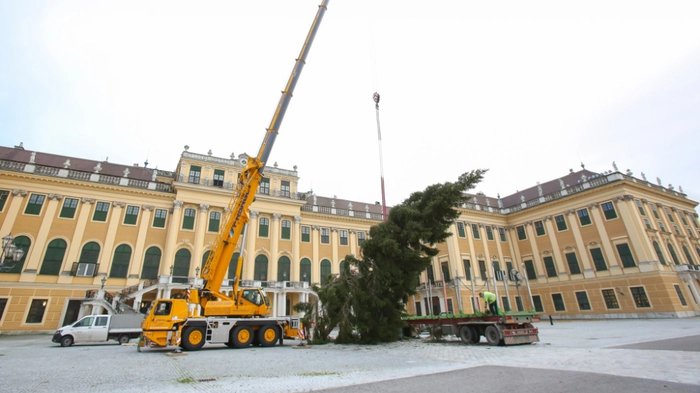 Zwischen Coronavirus, Lockdown und Terroranschlag ist es ein wohltuender Hauch von Normalität: Am Mittwoch ist im Ehrenhof des Schlosses Schönbrunn der Christbaum aufgestellt worden. An dem Termin wurde bewusst festgehalten, um "ein Zeichen des Friedens und des Miteinanders" zu setzen, hieß es. Verschoben wurde hingegen das Aufstellen des Baumes am Rathausplatz. Dies hätte am gestrigen Dienstag, einen Tag nach dem Anschlag, stattfinden sollen.