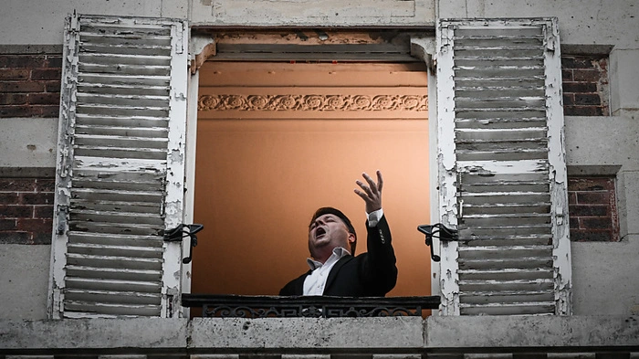 Der französische Tenor Stephane Senechal hatte im ersten Corona-Lockdown eine gewisse Berühmtheit dafür erlangt, dass er allabendlich aus seinem Pariser Fenster ein Gratiskonzert gab und damit die weltweite Bewegung der Fenster- und Balkonserenaden mitinitiierte. Nun hat der 44-Jährige seine Coronakonzerte wieder gestartet - wenn auch nur montag- und freitagabends. So könne er dem Endzeitgefühl etwas entgegensetzen, so Senechal im Reuters-Interview.