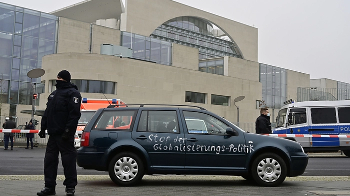 Auto mit Protestbotschaft rammt Tor des Berliner Kanzleramts