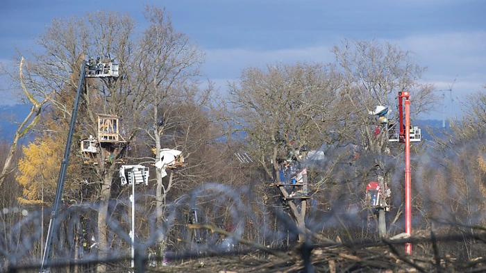 Nackte Klimaaktivisten haben am Freitag bei winterlichen Temperaturen auf dem Balkon eines Gebäudes in Wien ein Plakat entrollt, mit dem sie gegen die Rodung eines Waldes in Hessen protestierten. In dem Gebäude ist auch die Deutsche Botschaft untergebracht. "Mit Vollgas in die Klimakrise! - Bundesregierung: stoppt die A49!", stand auf dem Banner.