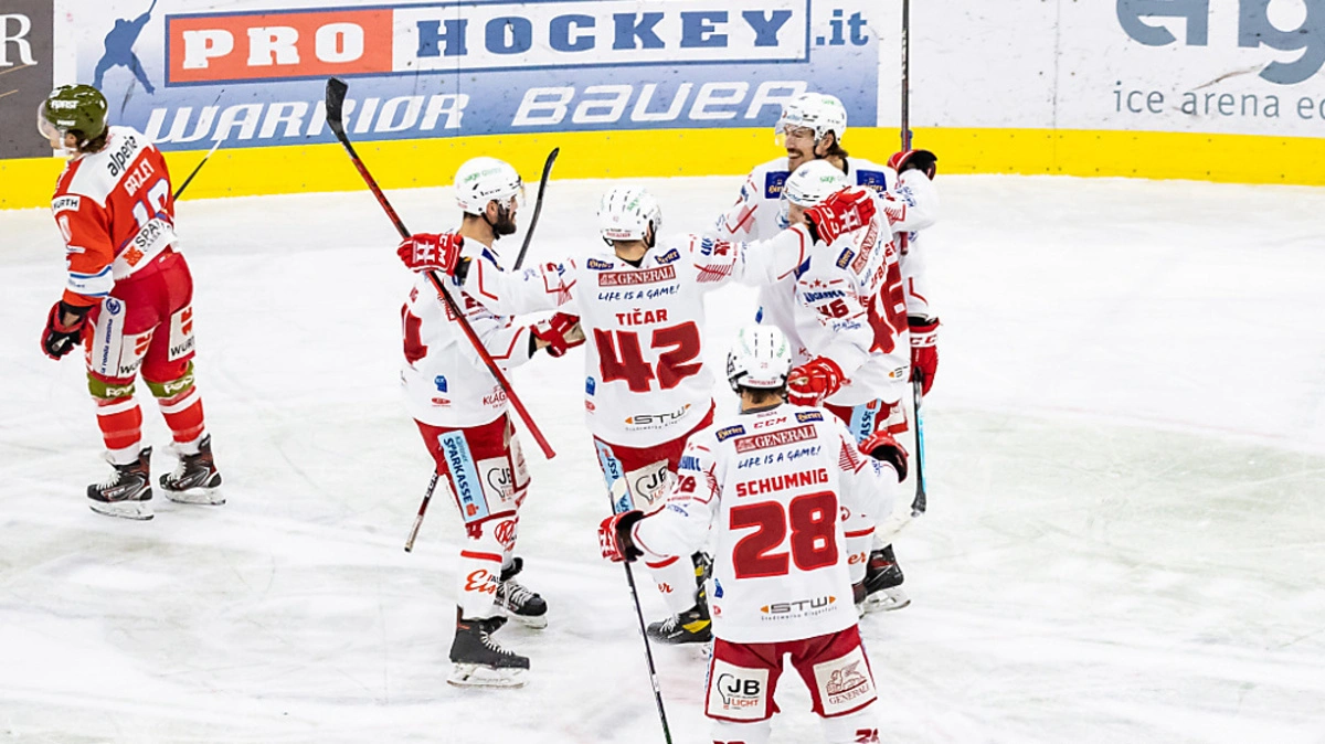Der KAC hat den ersten "Matchpuck" im Finale verwertet und sich nach dem österreichischen Meistertitel auch die Karl Nedwed Trophy für den Triumph in der ICE-Eishockeyliga geholt. Die Klagenfurter gewannen am Dienstag Spiel fünf der "best of seven"-Serie in Bozen mit 5:3 (1:1,2:1,2:1) und verteidigten den Titel aus dem Jahr 2019 mit Erfolg. Drei Powerplay-Tore ebneten der Mannschaft von Petri Matikainen den Weg zum Sieg.