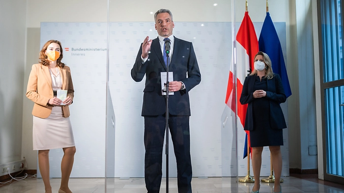 Nach der Serie an Frauenmorden haben die zuständigen Minister am Montag ein Maßnahmenpaket gegen die Gewalt in der Privatsphäre präsentiert. So soll künftig der Datenaustausch zwischen den einzelnen Einrichtungen verbessert, die Fallkonferenzen verstärkt und die Tatmotive besser durchleuchtet werden. Zudem soll jede Polizeiinspektion in ganz Österreich über speziell ausgebildete Präventionsbeamte verfügen, kündigte Innenminister Karl Nehammer (ÖVP) an.