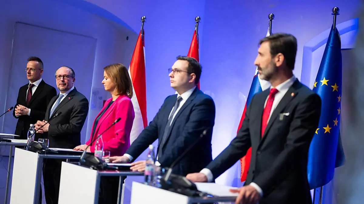 Bei ihrem elften Treffen in diesem Format haben die Außenminister Österreichs und Sloweniens mit ihren Amtskollegen aus Tschechien (Jan Lipavský), Ungarn (Péter Szijjártó) und der Slowakei (Juraj Blanár) am Dienstag auch über die Annäherung der Westbalkan-Staaten an die EU, irreguläre Migration und den Ukraine-Krieg beraten.