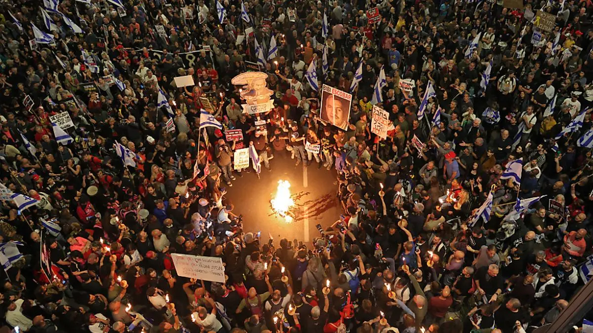 Einer der Redner in Tel Aviv erinnerte an Netanyahus Bruder Joni, der 1976 als Elitesoldat bei der Befreiung von Geiseln aus einem von palästinensischen und deutschen Terroristen entführten Flugzeug ums Leben gekommen war. "Und was ist mit dir, Bibi?", fragte er, Netanyahu mit der Kurzform seines Vornamens ansprechend. "Was hast du getan? Was wird dein Erbe sein? Nichts als politischer Spin und Intrige (...) wird dein Erbe sein."