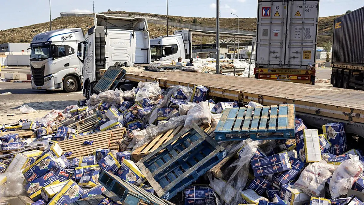Bei dem Protest am Kontrollpunkt Tarkumiyeh westlich von Hebron im besetzten Westjordanland wurden demnach neun Lastautos beschädigt. Die Aktivisten hätten zudem Hilfsgüter von den Lkw gezogen. Auf im Internet verbreiteten Aufnahmen ist zu sehen, wie Aktivisten die Lkw-Ladungen auf den Boden warfen. Kartons platzten auf, der Inhalt wurde über die Straße verstreut.