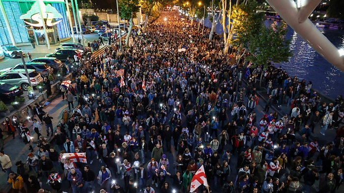 Die Massenproteste in Georgien reißen nicht ab: Am Freitagabend haben erneut tausende Menschen gegen das geplante Gesetz zur "ausländischen Einflussnahme" protestiert. In der Hauptstadt Tiflis zogen die Demonstranten zum Innenministerium, wie ein Reporter der Nachrichtenagentur AFP berichtete. Die Demonstranten forderten zudem die Freilassung von Protestteilnehmern, die bei früheren Protestzügen festgenommen worden waren.