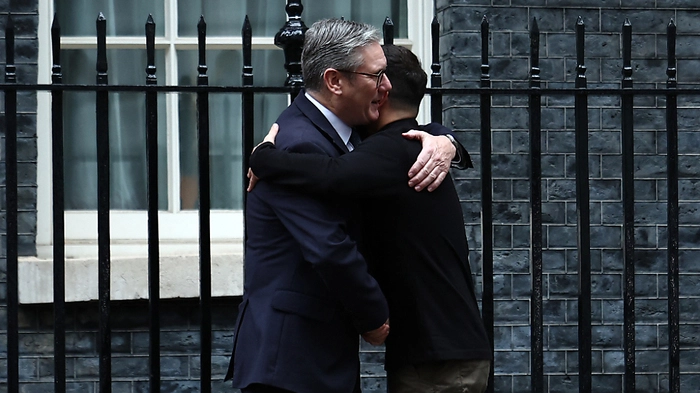 Mit einem Besuchsmarathon quer durch Europa versucht der ukrainische Präsident Wolodymyr Selenskyj die letzten Hilfsreserven für den Abwehrkampf seines Landes gegen Russland zu mobilisieren. Einen Tag vor seiner geplanten Visite in Berlin standen dabei der Reihe nach London, Paris und Rom auf dem Programm. In der britischen Hauptstadt empfing Premier Keir Starmer seinen Staatsgast an der Türschwelle des Regierungssitzes 10 Downing Street.