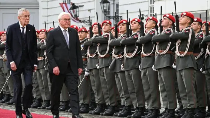 Steinmeier in Wien: Militärische Ehren im Regen zum Auftakt