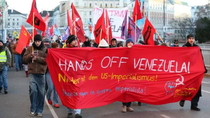 Das linke Bündnis "Antiimperialistische Koordination" (AIK) rief für Samstagnachmittag zu einer Demonstration unter dem Motto "Hände weg von Venezuela" im Wiener Votivpark auf. Nach Einschätzung von Beobachtern versammelten sich rund 200 Protestierende, die zur US-Botschaft ziehen wollten.