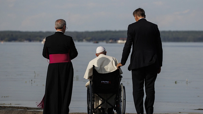 Papst Franziskus hat in Kanada einen für Ureinwohner und Katholiken bedeutenden See gesegnet und für eine Versöhnung mit den Indigenen gebetet. Das Oberhaupt der katholischen Kirche betete am Dienstagnachmittag (Ortszeit) in seinem Rollstuhl am Ufer des Lac Ste. Anne (See der Heiligen Anna) westlich der Großstadt Edmonton. Häuptlinge der Ureinwohner begleiteten ihn unter dem Jubel zahlreicher Menschen. Ungefähr 10.000 Menschen waren laut Vatikan gekommen.